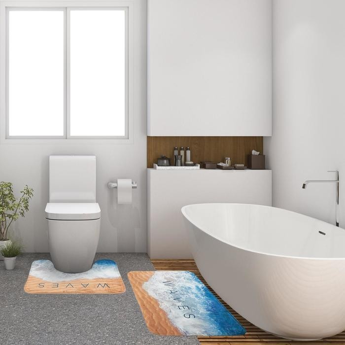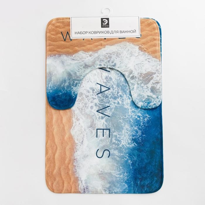Набор ковриков для ванной Этель «Waves» 2 шт, 80×50 см, 50×40 см, велюр