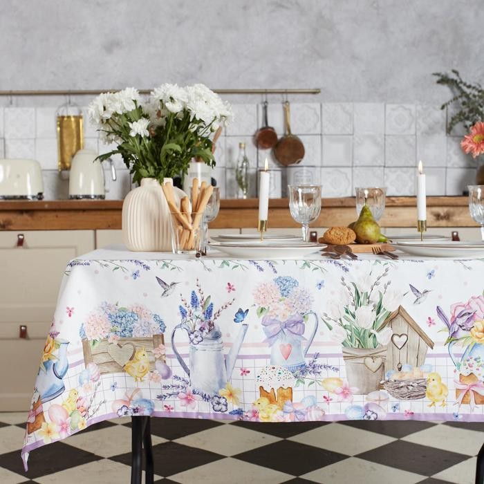 Скатерть «Этель» Цыплята и куличи 220×147 см, 100% хл, саржа 190 гр/м2