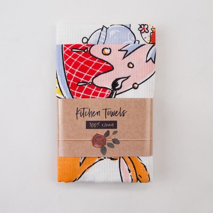 Набор кухонных полотенец Доляна «Пасхальные зайчики», 35х60см-2 шт, 100% хл, вафля 160 г/м2
