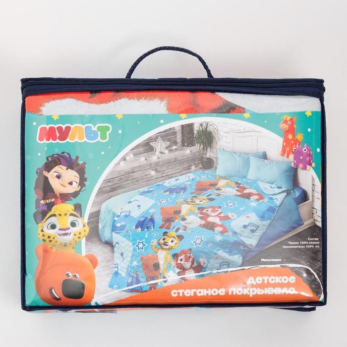 Покрывало стеганое Непоседа МУЛЬТ Мальчишки 145х200см поплин 105гм хл100%