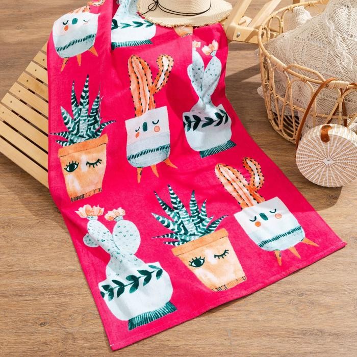 Полотенце «Сукуленты» 70*140 см, велюр/махра 350гр/м2, 100% хлопок