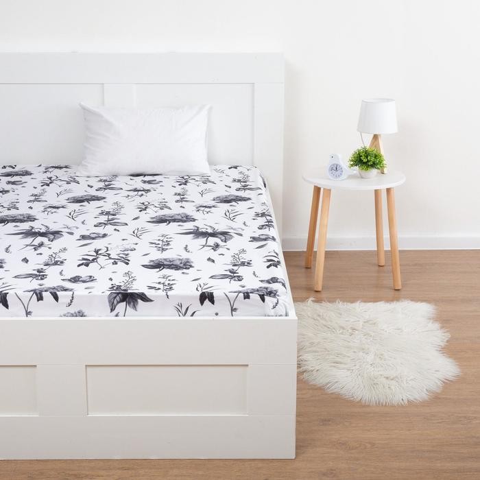 Простыня на резинке Этель 160*200*25 см «Ботаника», 100% хлопок, мако-сатин, 128 г/м²