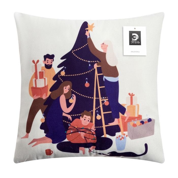 Новогодняя наволочка декоративная Этель «Семейный праздник» 40×40 см, 100% п/э