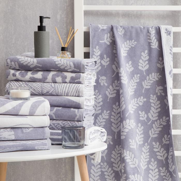 Полотенце махровое Этель Branches серый, 50×90 см, 100% хл, велюр, 420 гр/м2