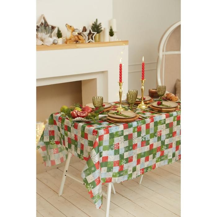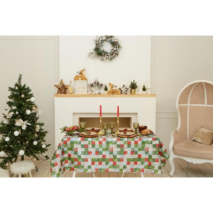 Скатерть Доляна «Новый год: Новогодняя мозаика» 145*300 +/- 2 см, 100% п/э