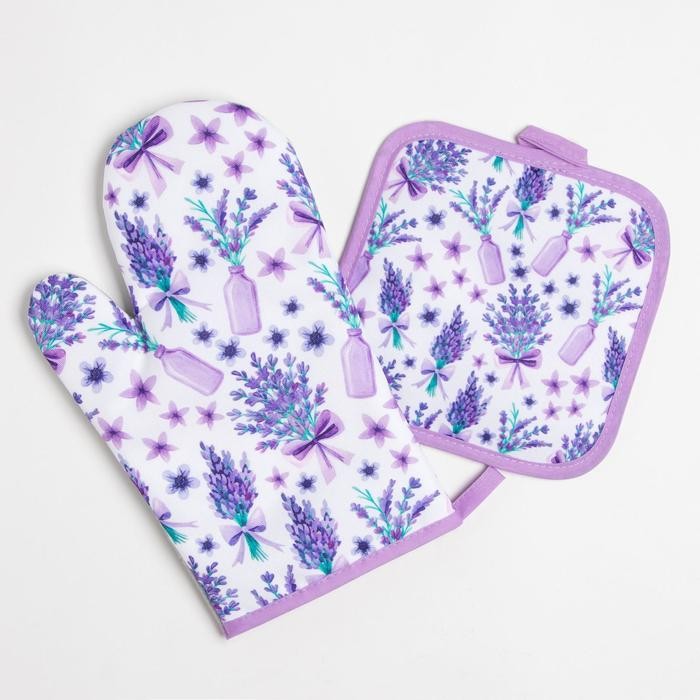 Кухонный набор Доляна «Романтика», прихватка 17*17 см, рукавица 26*16 см,100% п/э