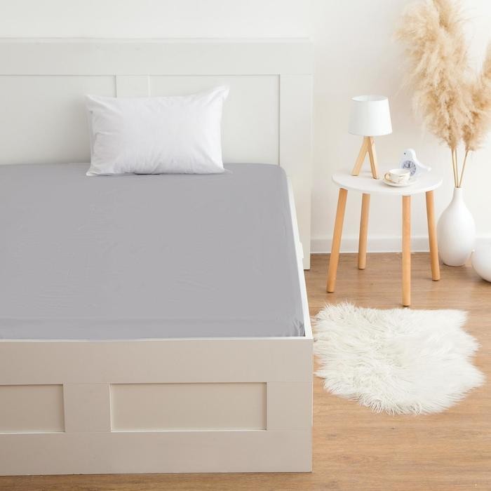 Простыня на резинке Этель 140*200*25 см, цв. серый, 100% хлопок, мако-сатин, 128 г/м²