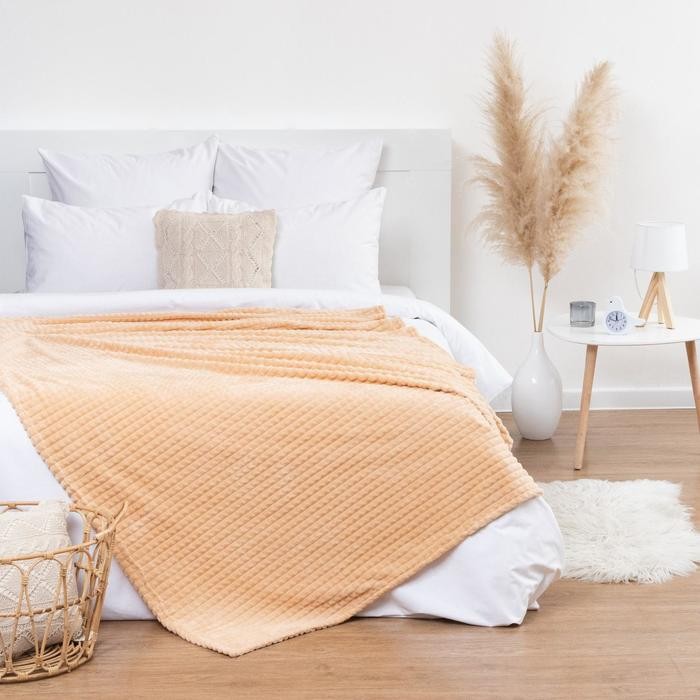 Плед Этель «Клетка» 150*200 см, цв.бежевый, корал-флис, 240гр/м2, 100% полиэстер