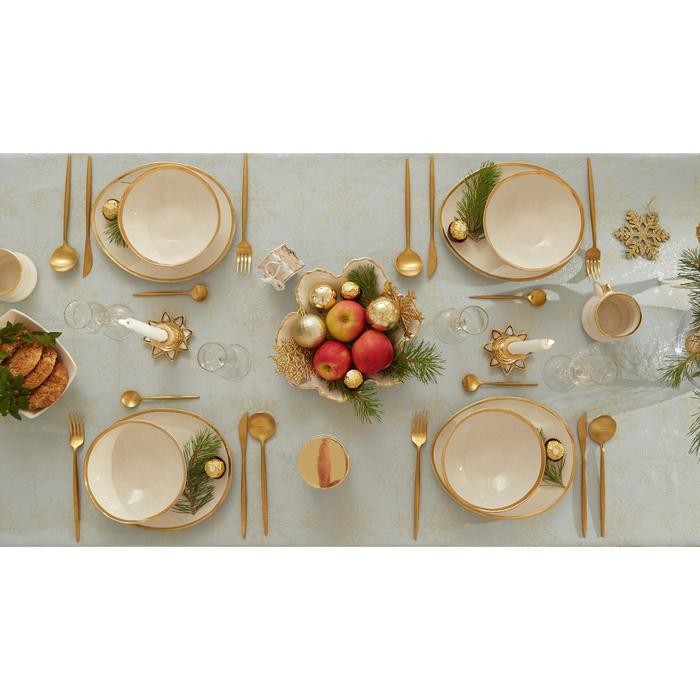 Скатерть Этель «Новый год: Снежинки» цвет голубой, 142*220 +/-3 см, 115 ±10 гр, 100% п/э