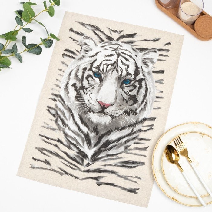 Полотенце Снежный тигр 45×60 см, лен 50%, хлопок 50%, 160г/м2