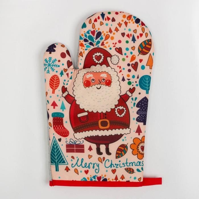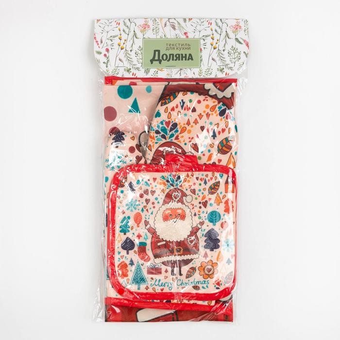 Кухонный новогодний набор Доляна «Санта», прихватка 17*17см,варежка 26*16см,фартук 60*80 см 100% п/э
