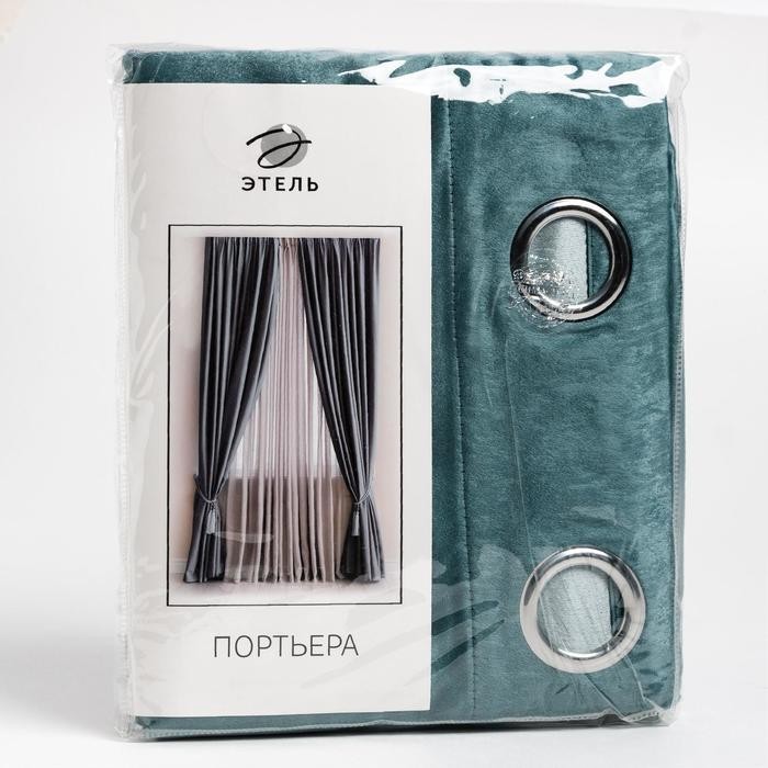 Штора портьерная Этель «Классика» цв.бирюзовый, 250*265 см, 100% п/э