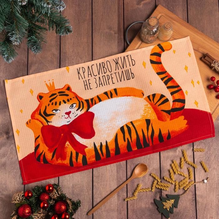 Полотенце кухонное новогоднее «Доляна» Красиво жить не запретишь 35×60 см, 160 г/м2