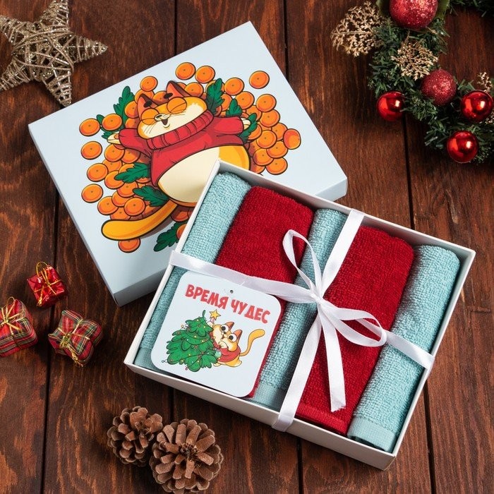 Набор махровых полотенец Этель «Котик» 30×30 см -5шт, 100% хл, 340гр/м2