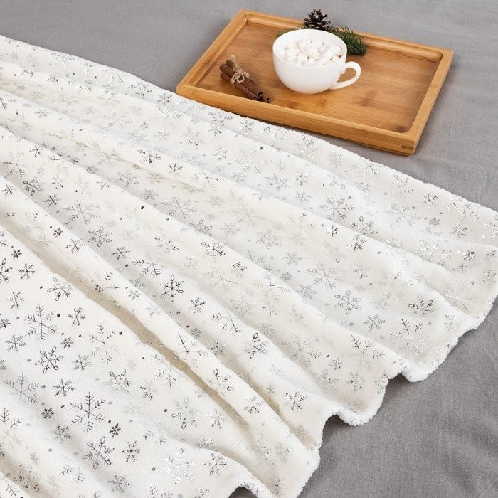 Плед Этель «Серебряные снежинки» 180*200 см,100% п/э, корал-флис 220 гр/м2