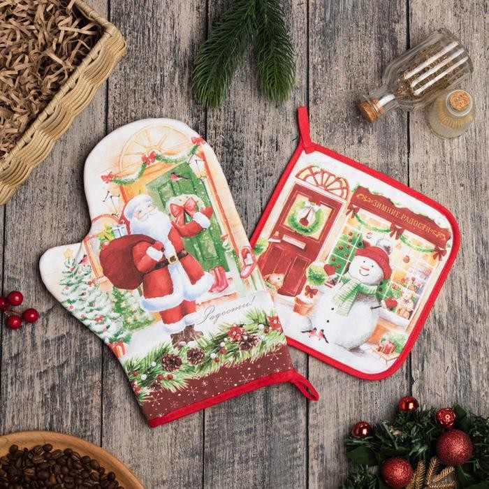 Набор Кухонный «Радости», варежка-прихватка 20х28см, прихватка 19х19см, 100%хл