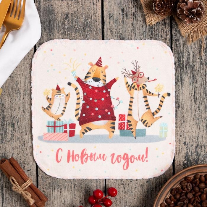 Новогодняя салфетка для уборки «С Новым Годом!», 20×20 см, п/э