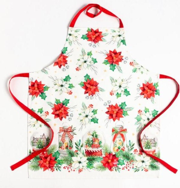 Набор подарочный «Этель» Christmas red flowers, фартук, полотенце, прихватка