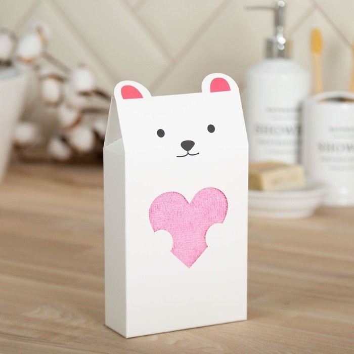 Полотенце подарочное Экономь и Я «Мишка» 30*60 см, розовый, 100% хл, 320 г/м2