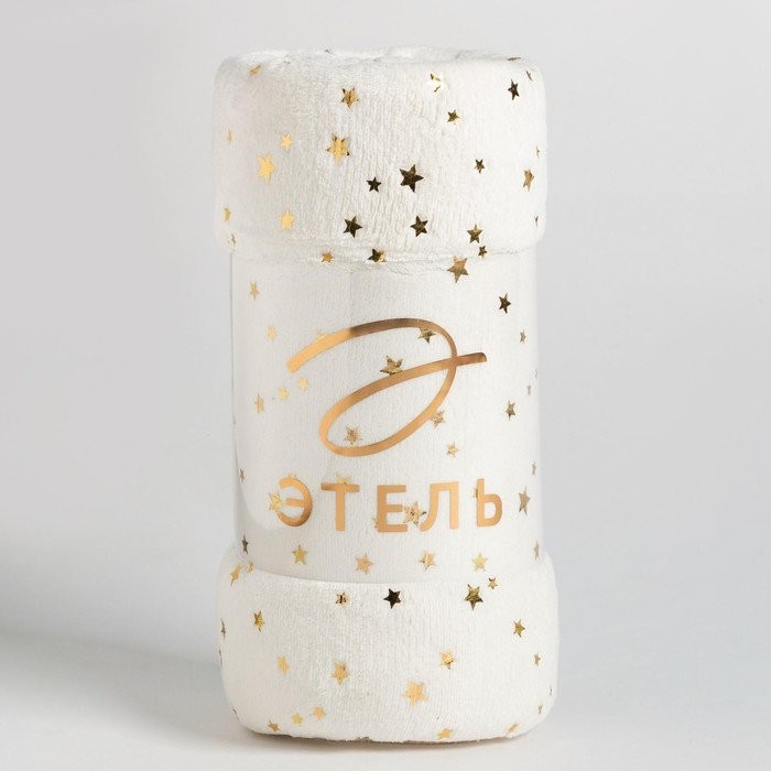 Плед Этель «Золотые звезды» белый 150*200 см,100% п/э, корал-флис 220 гр/м2