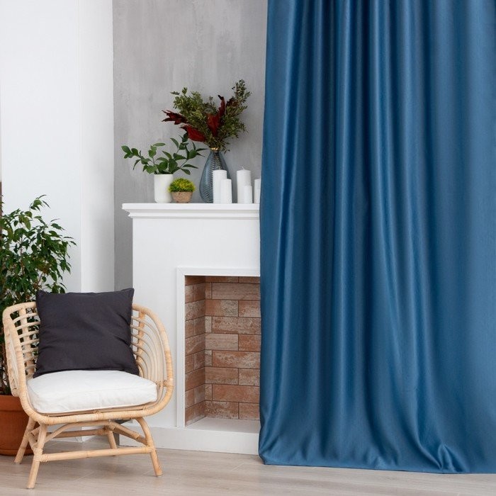 Штора портьерная Этель «Штрихи"цв.синий,на шторн.ленте 130*300 см,100% п/э
