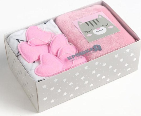 В набор входит плед 90 × 90 см и муслиновая пелёнка 75 × 120 см.