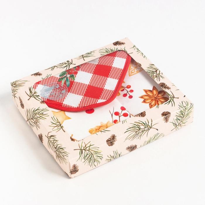 Набор подарочный «Этель» Golden Christmas, фартук, полотенце, прихватка