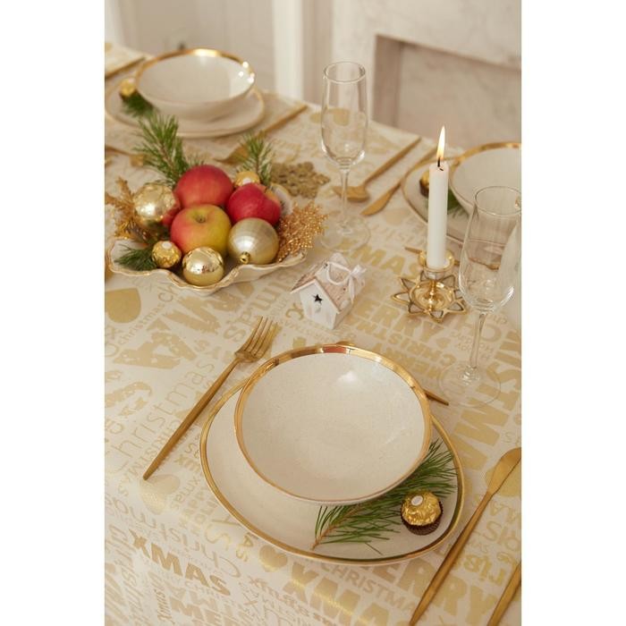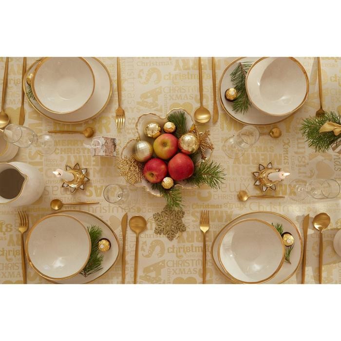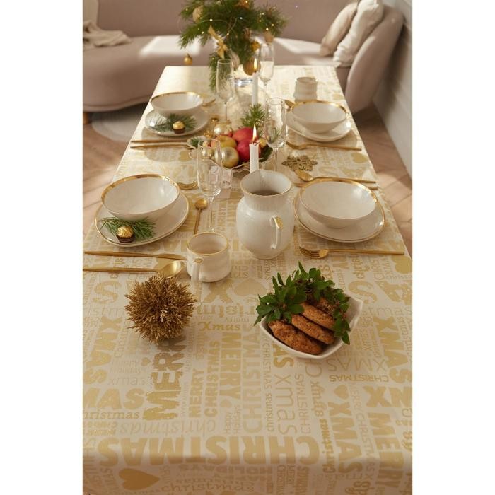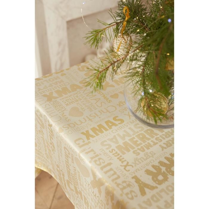 Скатерть Этель «Новый год: Merry xmas» цвет золотой, 142*110 +/-3 см, 115 ±10 гр, 100% п/э