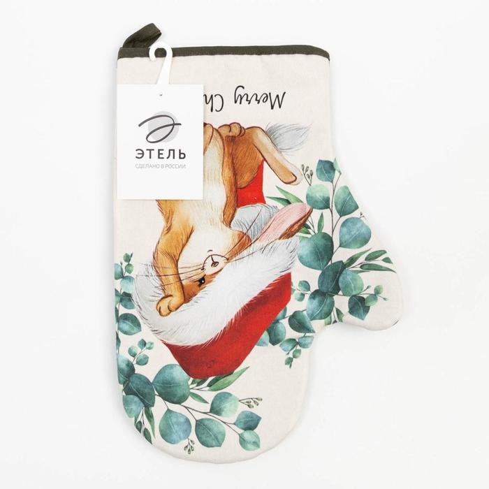 Варежка-прихватка «Сhristmas bunny» 20х28см, саржа, 100% х/л, ватин 250г/м2