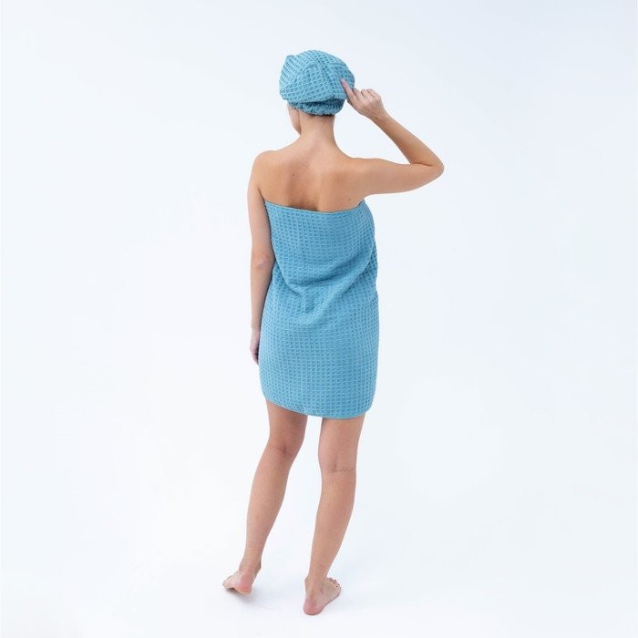 Набор для бани и ванной Этель «Вафля» полотенце 70*140 см+чалма 21*25 см, цв.синий