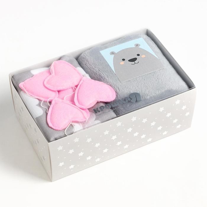 Набор Крошка Я «Серый мишка», плед 90×90 см, пеленка 75×120 см