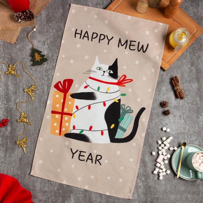 Полотенце «Этель» Happy mew year 40×73 см, 100% хл, саржа 190 гр/м2