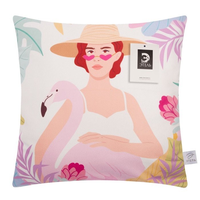 Наволочка Этель «Девушка с фламинго» 40×40 см, 100% п/э, велюр
