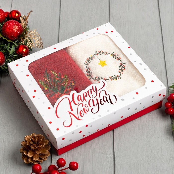 Набор полотенец Этель «Зимний букет» 30×60 см-2шт, 100% хлопок 340 г/м2