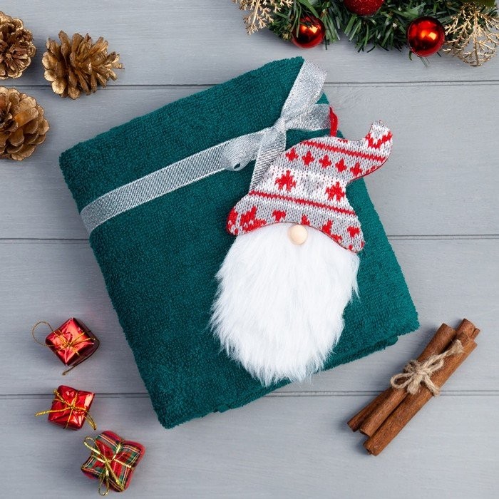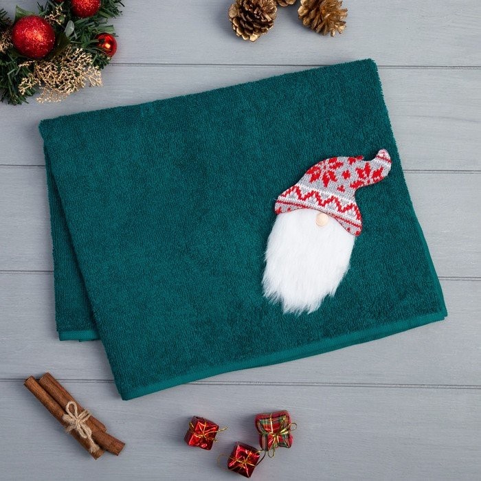 Подарочное полотенце с игрушкой Этель «Гном» 50*90 см, цв.изумрудный, 100% хл, 320г/м2