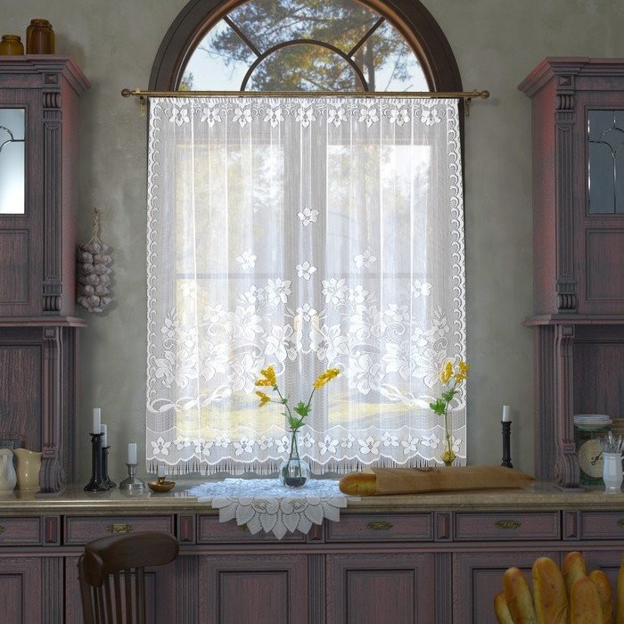 Тюль для кухни без шторной ленты, 175×145 см, цвет белый, полиэстер 100%