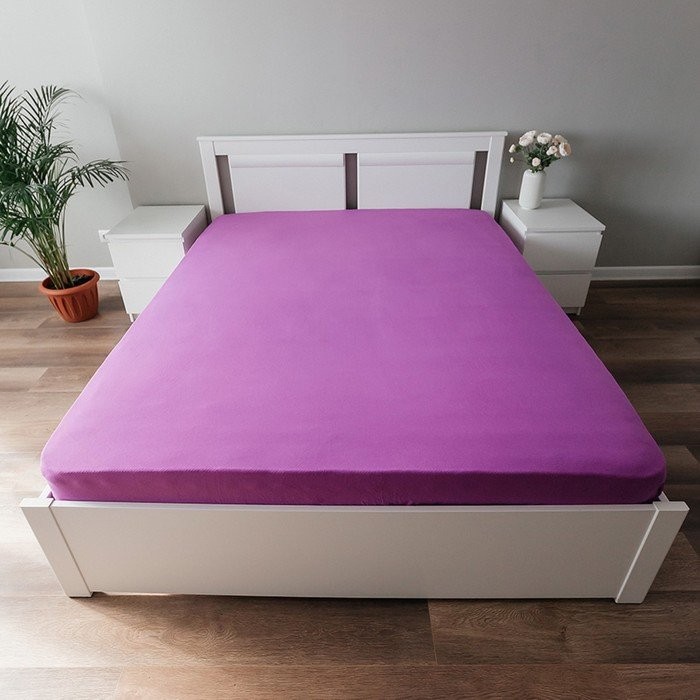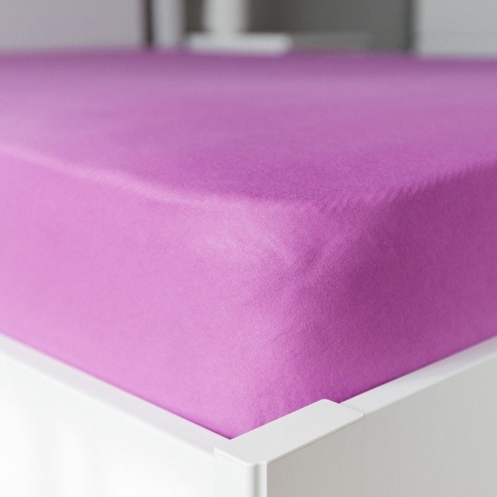 Трикотажная простынь на резинке 140х200х25см, фиолетовый кулирка, 120г/м хл100%
