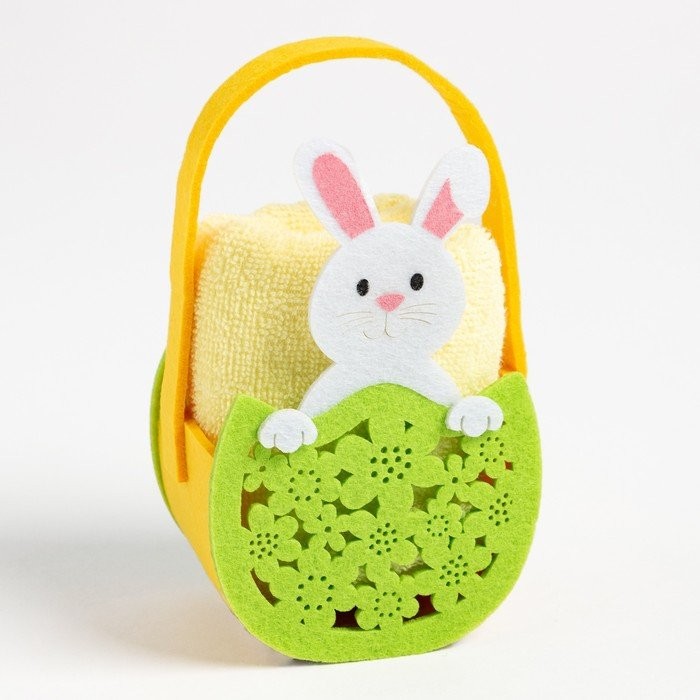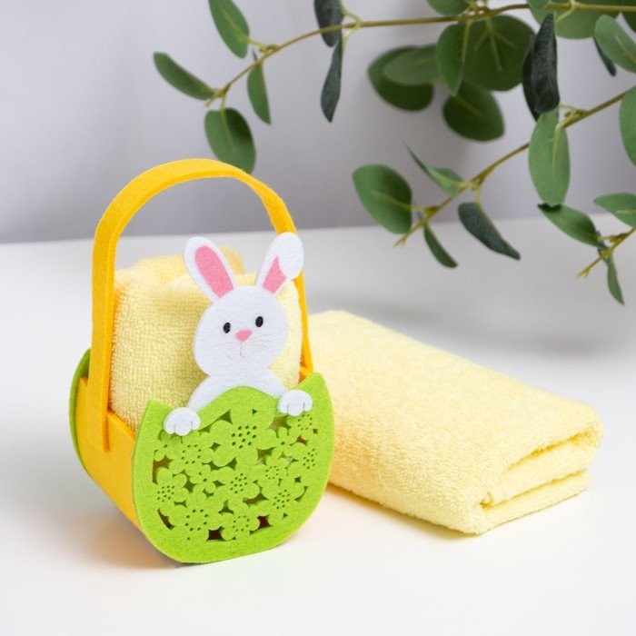 Полотенце пасхальное в корзинке Этель «Зайчик» 30*60см, цв.желтый, 100%хл, 320 гр/м2