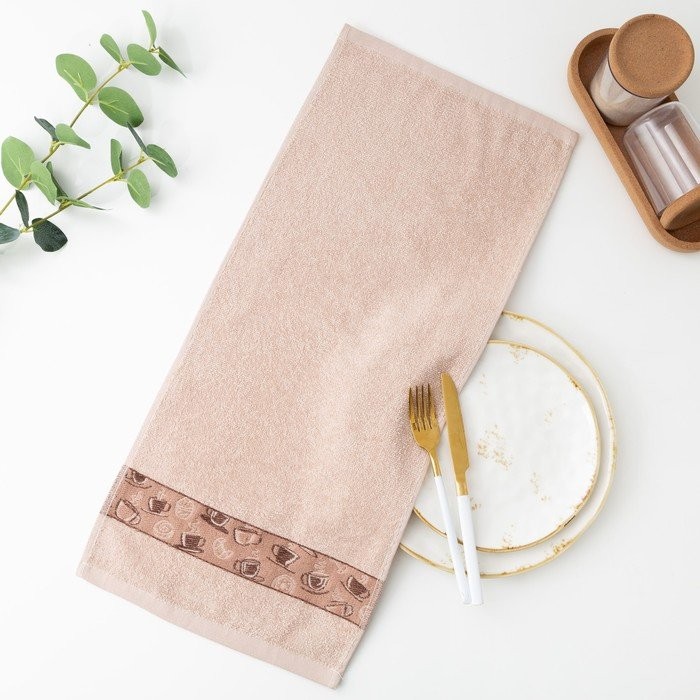 Полотенце 30*60 см, Чашки, бежевый, 340 гр/м, махра, хл