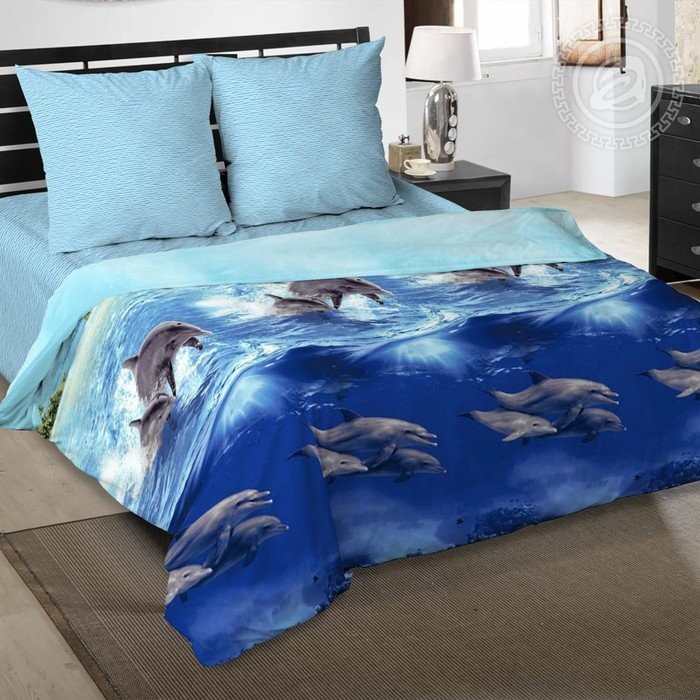 Постельное бельё евро «Голубая лагуна» 200х215см, 220х240см, 70х70см 2шт