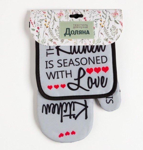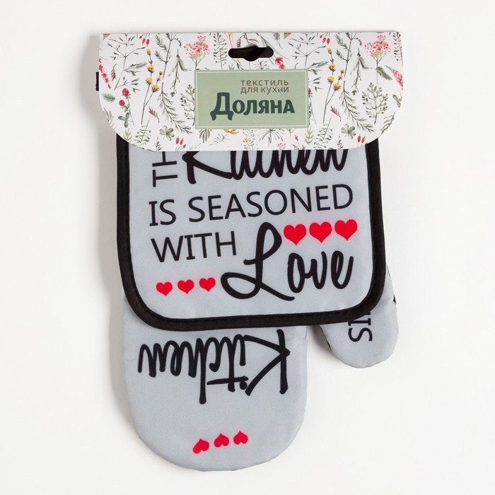 Кухонный набор (2 предмета) Доляна Kitchen, прихватка 17×17 см, варежка 26×16 см, 100% п/э