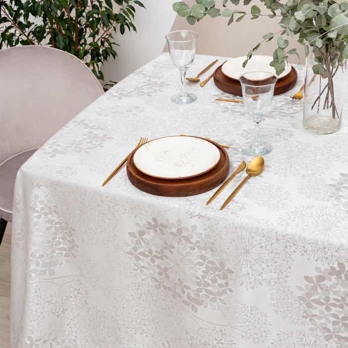 Скатерть Этель «Flowers» цв.серебро, 142*180 +/-3 см, 115 ±10 гр,100% п/э