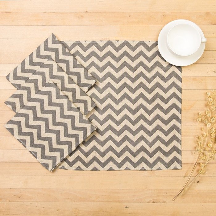 Набор декоративных салфеток Доляна 40х40см 4шт, Зигзаг серый, 100% пэ