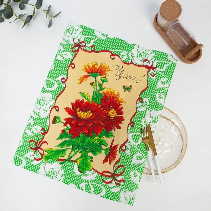 Полотенце 45×60 см, Удачи, салатовый, вафля, 160 гр/м2, хлопок 100%
