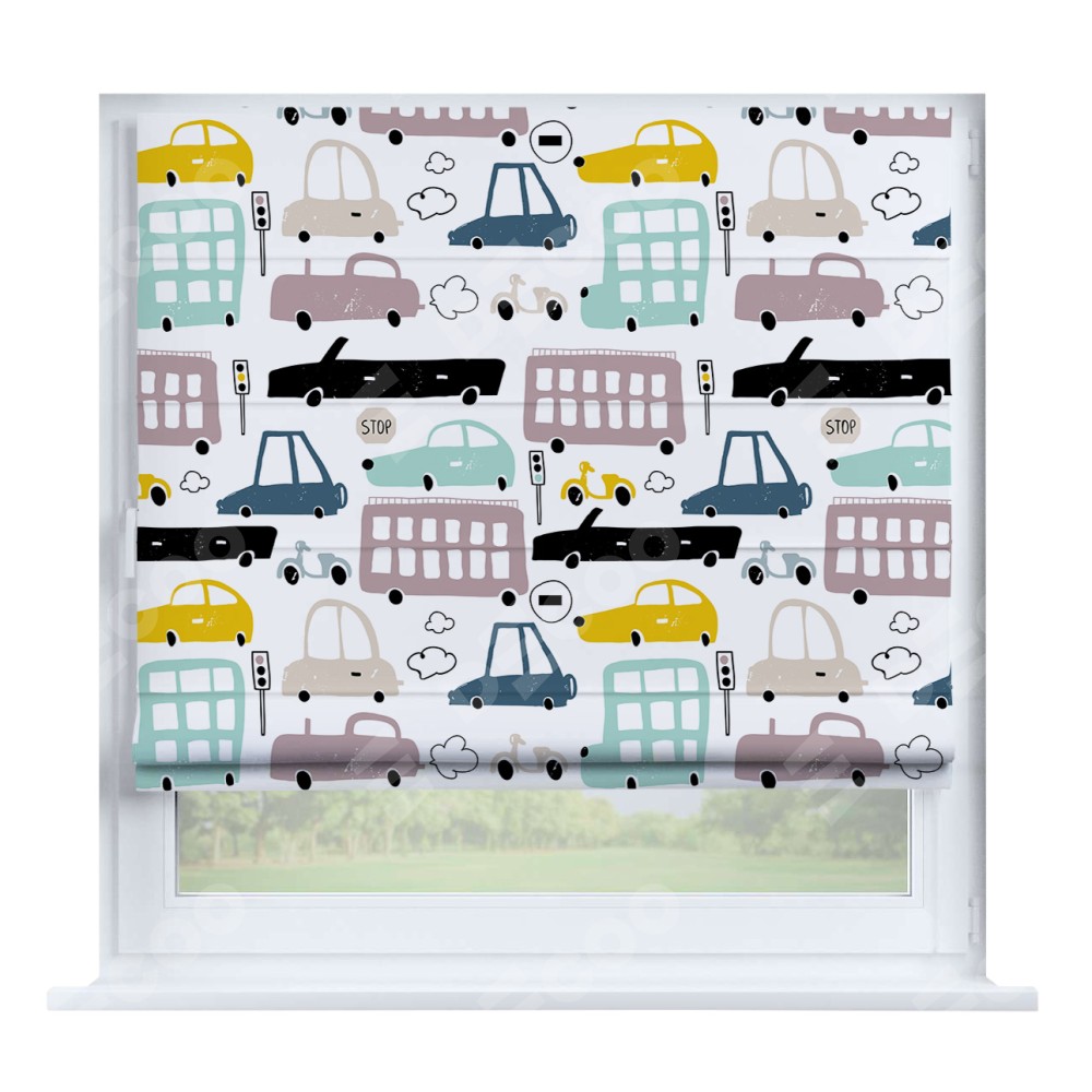 Римская штора производителя «Cortin», устанавливается на створку окна, пошита из ткани блэкаут с нанесением сублимационной печати «Красочный трафик». Штора шьётся по индивидуальным размерам, для данного типа римской шторы возможная ширина от 35 до 150 см., высота до 250 см.
