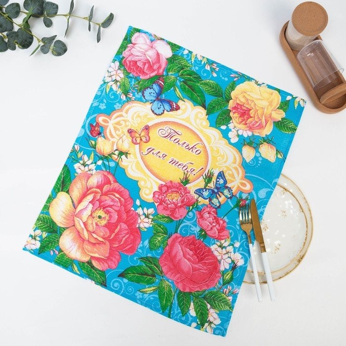 Полотенце в коробке 45×60 см, Английская роза, бирюза, вафля, 160 гр/м2, хлопок 100%