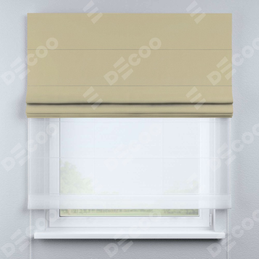 Римская штора день-ночь производителя «Cortin», используется для проёма, пошита из двух полотен, с лицевой стороны блэкаут однотонный кофейный артикул 13130, вторая ткань тюль (по стандарту комплектуется тюль белого цвета артикул V-01). Имеет универсальный механизм и подходит для монтажа: на потолок, на стену и в нишу.