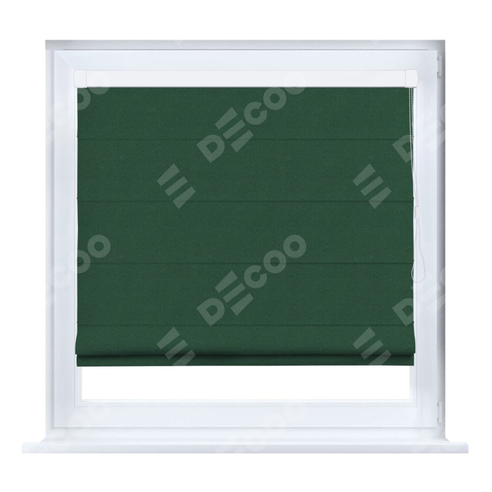 Римская штора кассетного типа, производителя «Cortin», устанавливается только на пластиковые окна и прилегает к стеклопакету, пошита из ткани лён димаут тёмно-зелёный, артикул 16246.