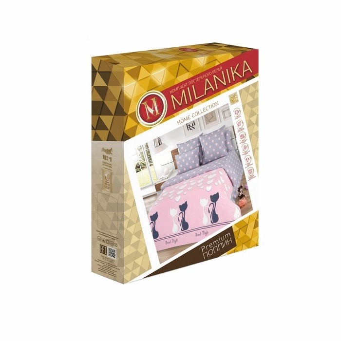 Постельное бельё евро Миланика ЛяМурр 200х217см, 217×240 см, 70х70см 2 шт, поплин 117г/м, хлопок 100%