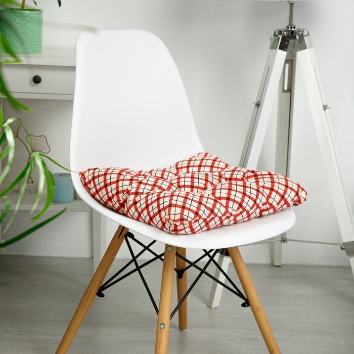 Подушка на стул Клетка красная 40х40см, рогожка, 150 г/м2, холлофайбер